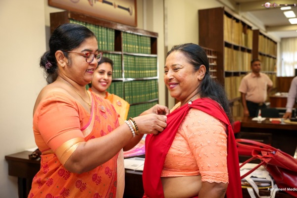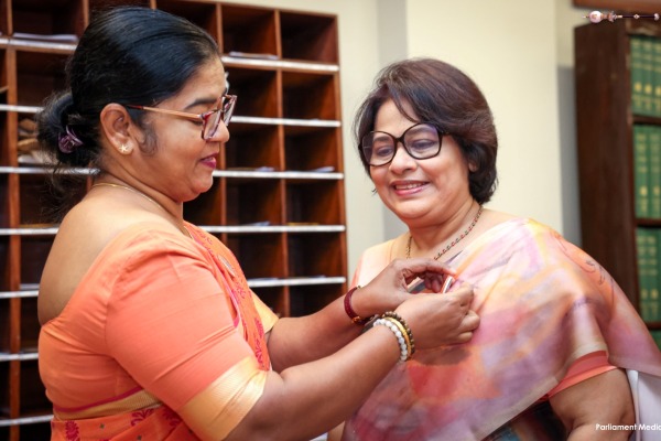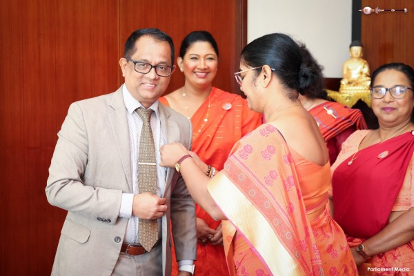 Supporting the “16 Days of Activism” to end gender-based violence, a series of programmes was held today (Nov. 24) within Parliament. Accordingly, badges symbolizing the commitment to end gender-based violence were pinned onto Hon. Prime Minister Dr. Harini Amarasuriya and Hon. Speaker (Dr.) Jagath Wickramaratne.